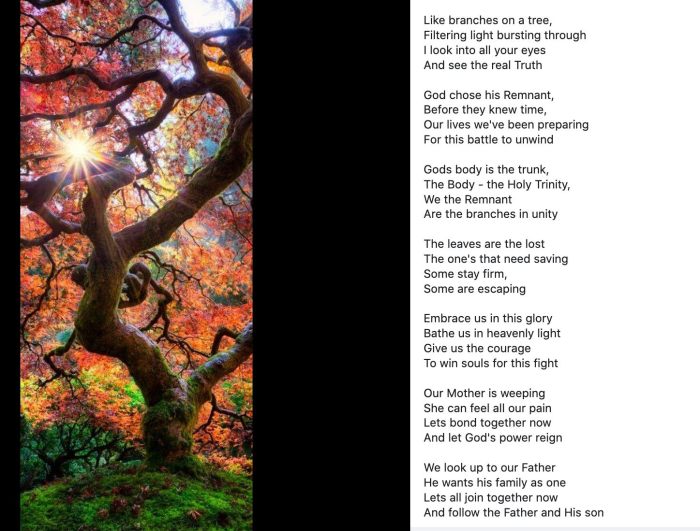 April 29, 2020 maranatha2017 A Remnant’s Poem By Caroline Anne Share this: Email a link to a friend (Opens in new window) Email Print (Opens in new window) Print Share on WhatsApp (Opens in new window) WhatsApp Tweet Share on Telegram (Opens in new window) Telegram MoreShare on TumblrLike Loading... Related