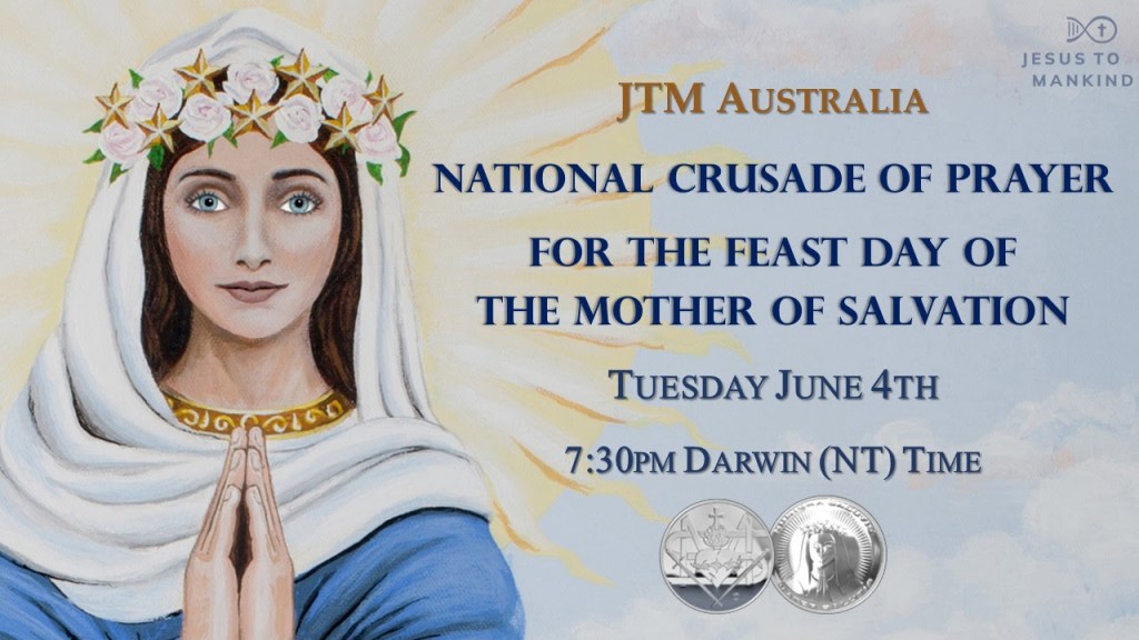 In honour of the Feast Day of the Mother of Salvation, please join us at our zoom Crusade of Prayer session at 7:30pm Darwin (NT) time / 8:00pm Sydney (Australia) time. Link to join https:us02web.zoom.us/j/84978130807